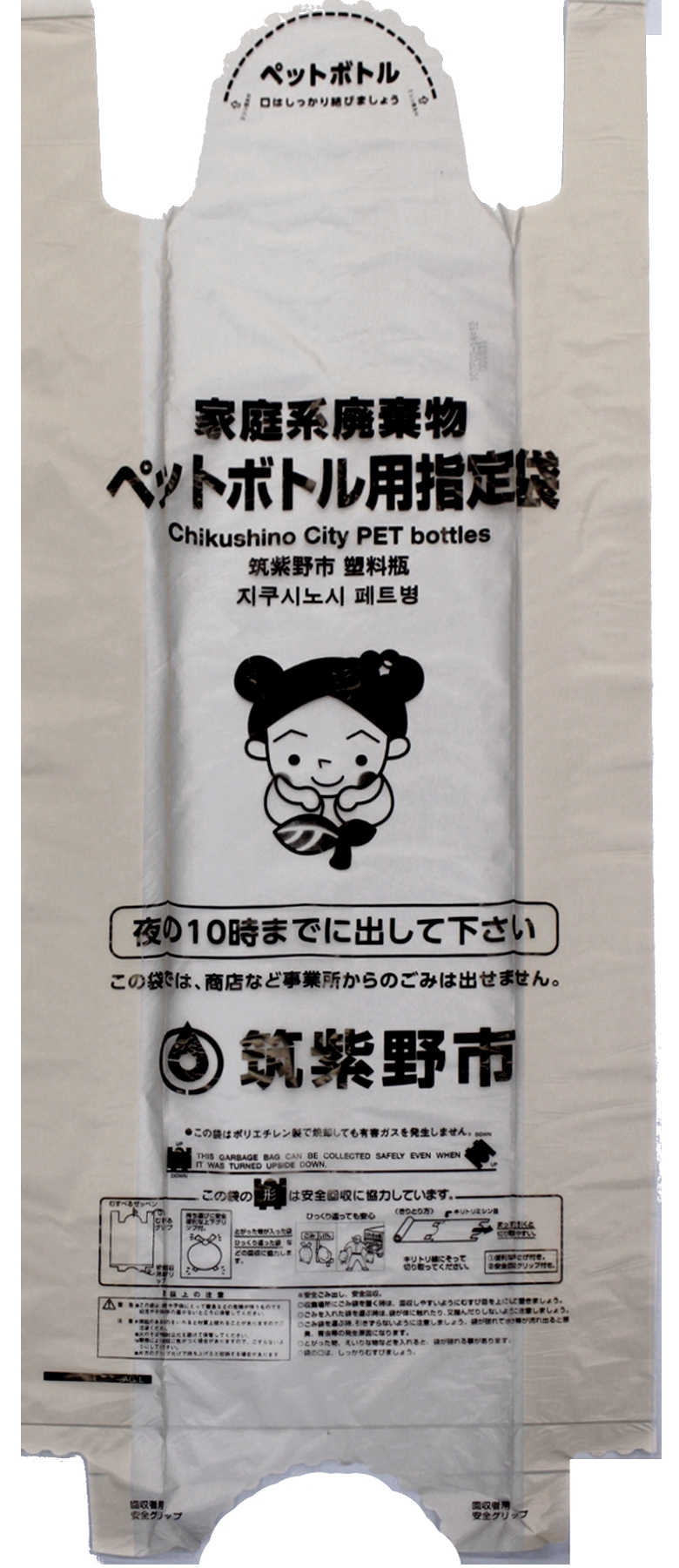 ペットボトル用ごみ袋の中に、衣料用洗剤ボトルが混入していました。このボトルは、PETマークがない「プラスチック容器」のため可燃物になります。