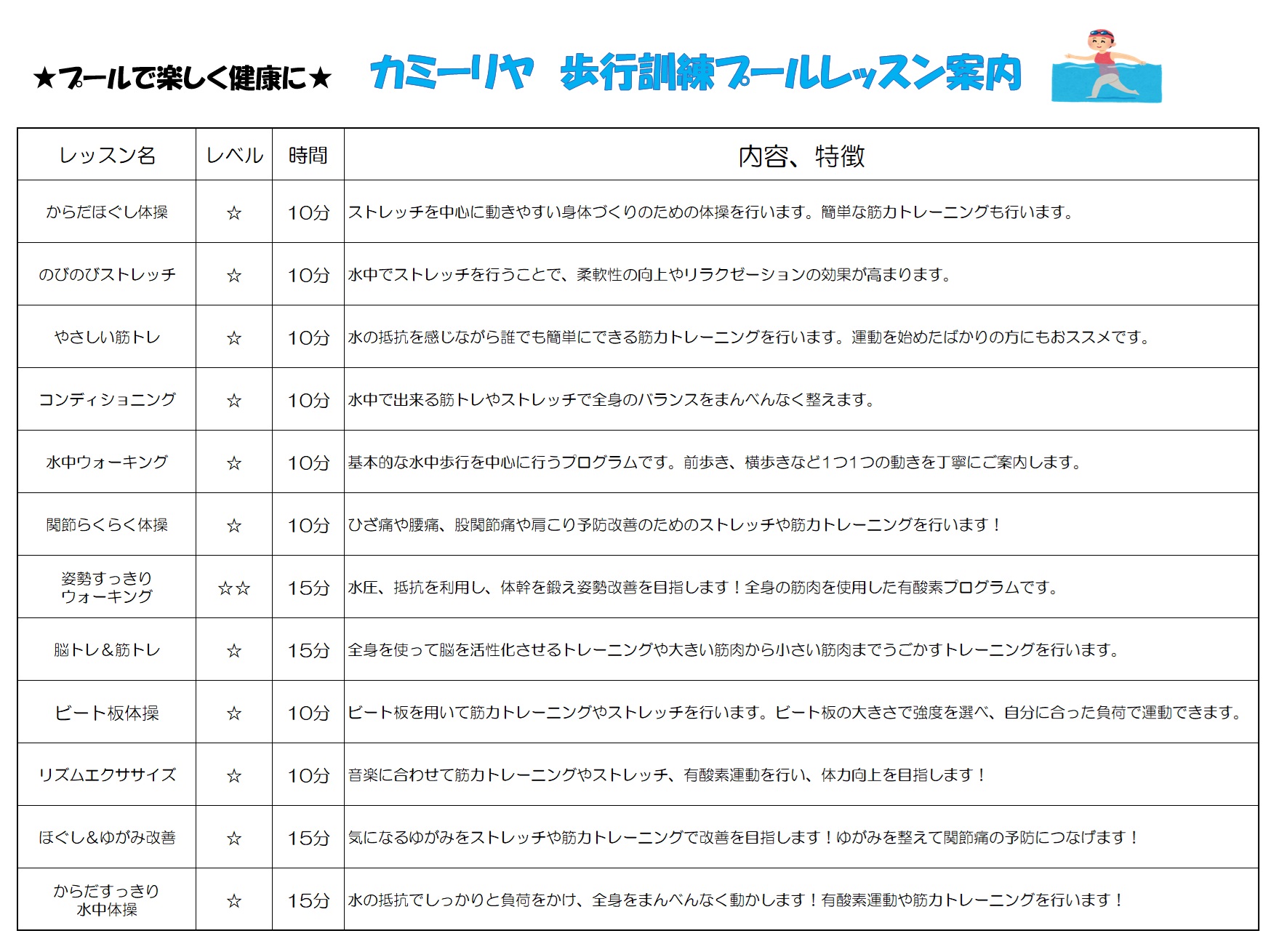 1月から3月の歩行訓練プールのレッスン内容はこちら [その他のファイル/500KB]