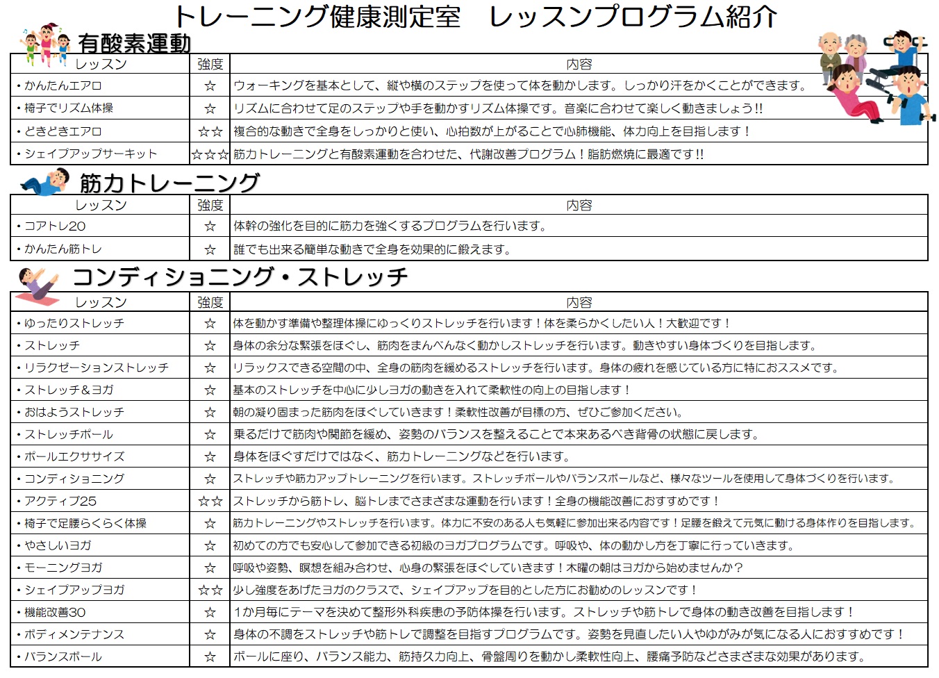 10月から12月のトレーニング健康測定室のレッスン内容はこちら [その他のファイル/556KB]
