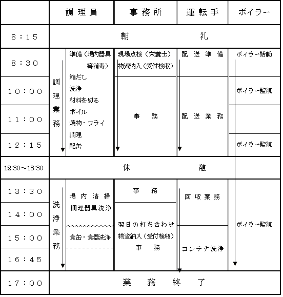5.学校給食共同調理場の業務内容 (一日の仕事の流れ)