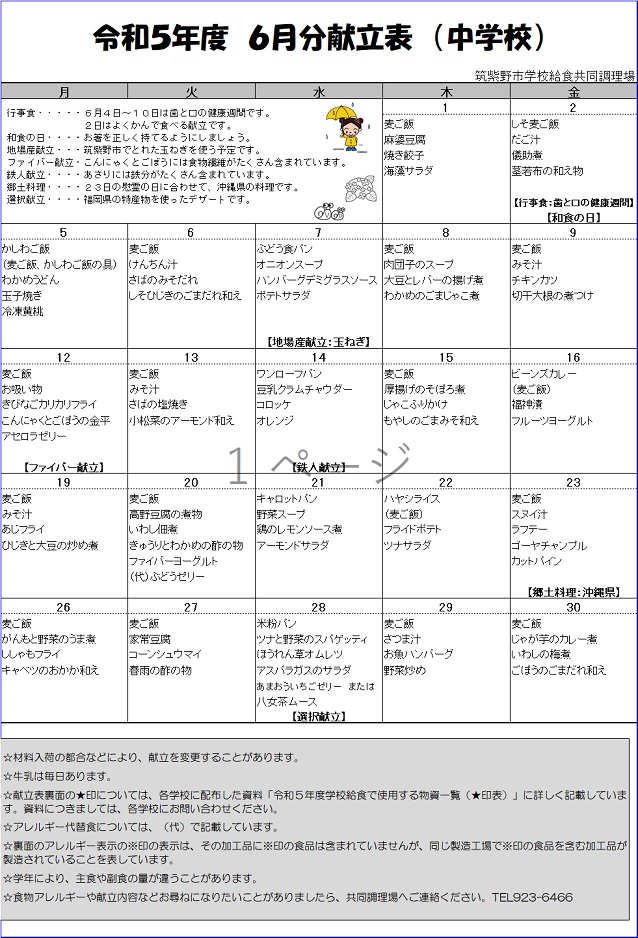 6月(がつ)の写真(しゃしん)付(つ)き献立(こんだて)(令和5年度)