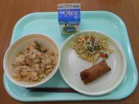 中華風炊き込みごはん 揚げ春巻き 野菜のアーモンド炒め 牛乳 |