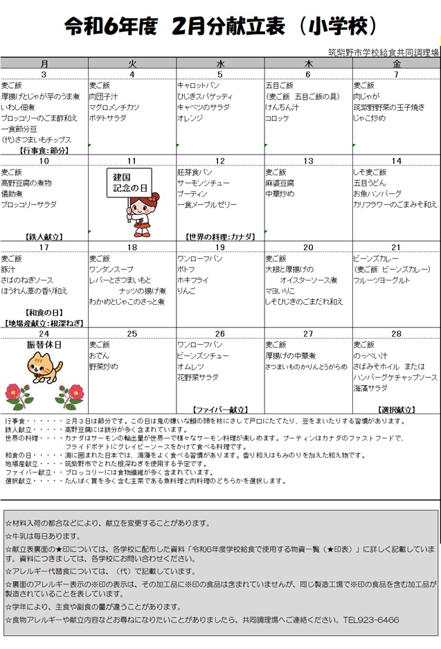 2月(がつ)の写真(しゃしん)付(つ)き献立(こんだて)(令和6年度)