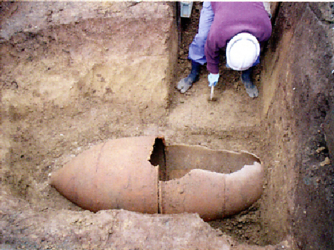 何らかの工事中に未知の文化財が発見された場合、工事の中断が生じる場合があります。このような事態を避けるため、筑紫野市教育委員会では、埋蔵文化財を包蔵する可能性がある土地の工事等については、試掘調査等により事前に埋蔵文化財包蔵状況を確認するよう指導しています。